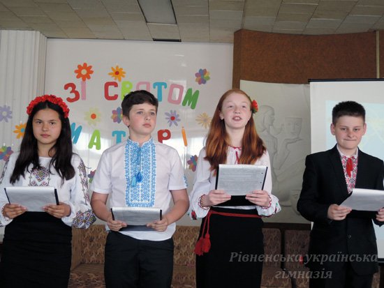 У програмі свята звучали вірші та пісні про маму, виконані ансамблем семикласниць під керівництвом Туровської Лідії Іванівни. Приємним сюрпризом для присутніх став виступ родини Ліщинських, а цікаві презентації про матусь та конкурсну програму для учнів та батьків провела гімназійна мама Олена Феодосіївна. Також гімназисти порадували мам веселими гуморесками, запальними танцями, музичними номерами та подарунками, які діти виготовили власноруч.