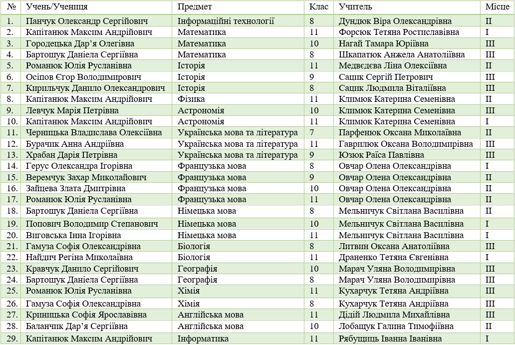 Поки що ділимося з вами перемогами ліцеїстів у II етапі (районному) Всеукраїнських учнівських олімпіад. Вітаємо! Пишаємося! Бажаємо нових перемог, успіхів, натхнення та подальших злетів!