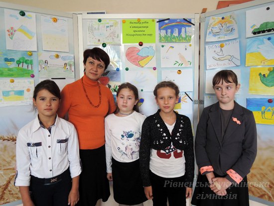 Учні Рівненської української гімназії готувалися до цієї дати заздалегідь. Провели урок миру та підготували малюнки гімназисти 5-х класів, виготовили чудових голубів, вісників миру, шестикласники, написали листи воїнам у зону АТО семикласники та восьмикласники. А учні старших класів привернули увагу до проблем миру та насилля, створивши формацію «МИР!», яку мали змогу під час великої перерви побачити усі гімназисти та педагоги закладу.
