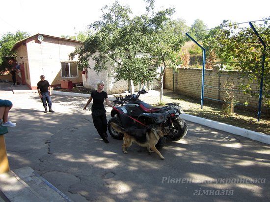 Вересень розпочався для нас, гімназистів 6-А кл., цікаво. Ми відвідали кінологічний центр, який знаходиться неподалік від Рівного. У 2009 році він був кращим в Україні. Кінолог п. Людмила показала нам усіх службових собак, які в даний час знаходяться на службі. Нам продемонстрували, як собаки долають перешкоди, затримують злочинців, за лічені хвилини розшукують наркотики та вибухівку.