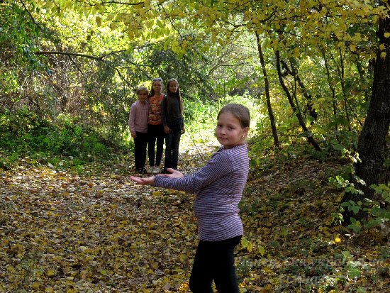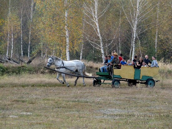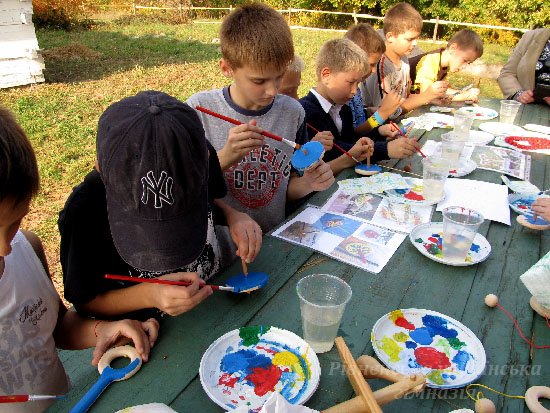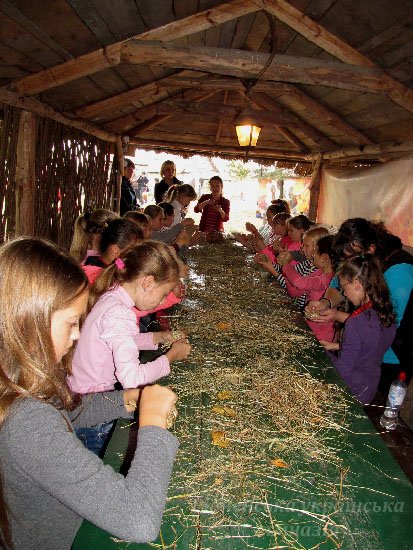 Захоплюючих вражень багато. Як наші хлопці грали у футбол з лучанами і виграли. Як ми у курені №1 їли вареники з картоплею, куліш, приготовані у справжній печі. Як слухали розповіді екскурсоводів про сільськогосподарські традиції на Волині та побували усередині справжнього вітряного млина, побачили курну та білу хати, стодолу, комору. Як каталися на бричці, запряженій симпатичним коником сірої масті. Шкода лише, що не усі охочі змогли це зробити – пробите колесо завадило. Проте майстер-класи проведені майстрами з Луцька,сповна це компенсували. Ми, дівчатка, робили ляльки-мотанки (вийшли такі різні, і трохи схожі на власниць:)) а ще хлопці та дівчата розмальовувати дерев’яні іграшки - дзиґи, вітрячки, деркачі, фуркала. А ще ми грали в твістер, лазили по деревах, плели вінки з золотого листя, гралися з тваринками – цуценям та двома котами і фоткалися, фоткалися...