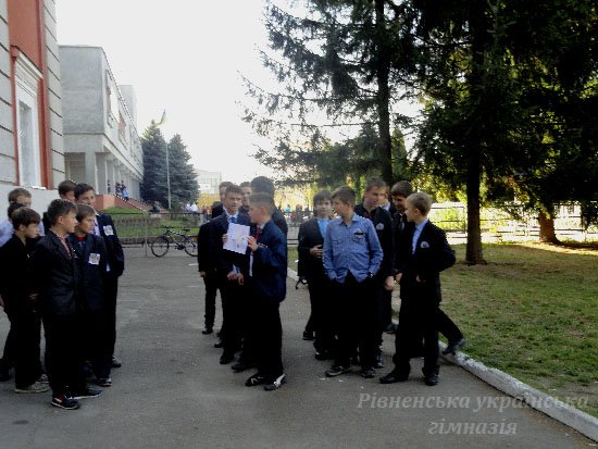 15 жовтня 2014 року, з нагоди свята Покрови і Дня українського козацтва для учнів 7-х класів Рівненської української гімназії проводився інтелектуально-спортивний турнір «Козацькі забави» під девізом «Козацькому роду – нема переводу». Гімназисти отримали можливість позмагатися в кмітливості, силі, спритності, як справжні козаки. Змагання відбувалися між чотирма куренями, кожен з яких мав назву, девіз, яскраве представлення. Очолювали козаків справжні отамани: Сімаков Єгор очолив курінь «Січових стрільців», Лецкалюк Андрій – курінь «Нацгвардія», Співак Олександр – курінь «Козаки волі», Невірковець Вадим – курінь «Січовики». Кожна команда проходила випробування 9 порогами: «Кмітливий козак», «Як козаки прислів’я доповнювали», «Як козаки пісні співали», «Як козаки загадки відгадували», «Як козаки картину складали», «Як козаки скоромовки говорили», «Як козаки борщ варили», «Як козаки пораду козака Мамая розшифровували», «Як козаки олімпійцями стали». Подолавши останній поріг, усі семикласники пригостилися справжнім козацьким кулішем, який приготувала родина семикласниці Римчук Анни: Євген Миколайович та Оксана Богданівна. В турнірі «Козацьких розвагах» переміг курінь «Нацгвардія», перемогу у номінації «Найспритніші козаки» - курінь «Козаки волі», у номінації «Найдружніші козаки» - курінь «Січові стрільці», а у номінації «Найкмітливіші козаки» - курінь «Січовики». Вболівальники активно підтримували свої команди. Всі учасники змагань отримали багато позитивних емоцій та солодкі призи від батьківської громади 7-х класів.