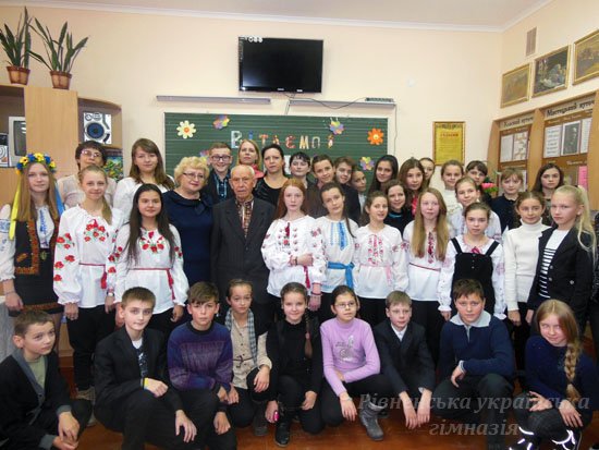 28 листопада гімназія приймала почесного гостя, рівнянина, колишнього учня довоєнної гімназії, ветерана УПА, голову місцевого братства повстанців, щирого патріота Батьківщини Василя Макаровича Кирилюка. Уся гімназійна громада зібралася, щоб привітати його з 90-літтям. Для молодого покоління учнів життєвий шлях Василя Макаровича є прикладом мужності, героїзму, справжнього патріотизму. З нагоди ювілею гімназисти привітали дорогого гостя святковим концертом, під час якого звучали українські пісні у виконанні ансамблю семикласниць. Поезії читали Червона Марія, учениця 8 А класу, та Якимець Олена, учениця 9 А класу. Дотепні гуморески розповідав гімназист 6 А класу Клименко Гліб. З вітальним словом звернулася до Василя Макаровича директор гімназії Тетяна Андріївна Кухарчук, усі разом переглянули фото гімназійних подій. Василь Макарович ще раз розповів дітям про сувору школу життя, пригадав свою юність.